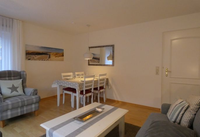 Diese schöne und moderne 70 qm Wohnung in der Nähe des Südstrandes befindet sich im Erdgeschoss in einer Wohnanlage mit insgesamt 4 Wohneinheiten im Haupthaus und einer Bungalowsiedlung von 8 Einheiten. In der separaten und gut ausgestatteten Küche finden sie ein Backofen, Kühlschrank mit Gefrierfach und eine Geschirrspülmaschine. Der gemütliche Essbereich im Wohnzimmer bietet Platz für 4 Personen und die moderne Wohnlandschaft lädt zum Relaxen ein. Ein LED- Fernseher, Radio und WLAN sind vorhanden. Durch die Terrassentür kommen sie in ihren möblierten Gartenteil. Im gemütlichen Schlafzimmer befindet sich ein Doppelbett 1,80 x 2,00 m mit geschlossenem Fußende und ein Kleiderschrank. Das großzügige Kinderzimmer verfügt über zwei Einzelbetten 0,90 x 2,00m. Bettwäsche und Handtücher sind für 25 Euro pro Person inklusive. Im Badezimmer befindet sich ein WC, Waschbecken, Dusche und einen Föhn. Für die kleinen Gäste sind ein Kinderhochstuhl und ein Kinderreisebett kostenlos verfügbar und auch ein Spielplatz befindet sich auf dem großzügigen Grundstück.