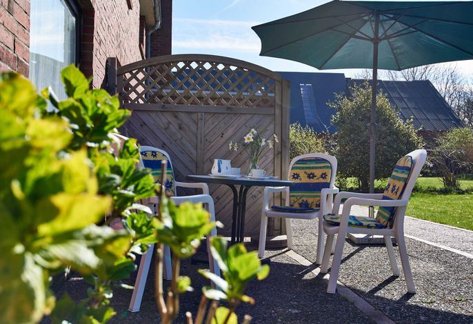 Dank der ruhigen Lage können Sie sich auf unserer Terrasse und in unserem großen Garten bestens erholen.