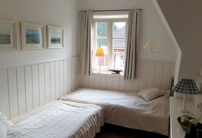 Diese gemütliche kleine, aber feine 55 qm große 2 Zimmerwohnung im 1. Obergeschoss bietet Platz für bis zu 4 Personen und einem Hund. Sie liegt im Dorf Boldixum angrenzend zu Wyk in einem Reetdachhaus mit weiteren 7 Wohneinheiten. Die Wohnung verfügt über ein kombiniertes Wohn- Ess- Zimmer mit einer modern ausgestatteten Küche. In der Küche finden sie alles, was man zum Kochen braucht. Eine Geschirrspülmaschine, Mikrowelle, Backofen und ein Kühlschrank mit Gefrierfach sind vorhanden. Am Esstisch mit vier Plätzen können sie entspannt Frühstücken und in den Tag starten. Der Wohnbereich verfügt über eine gemütliche Eckcouch, welche mit Schlaffunktion für 2 Personen Platz bietet. Das Schlafzimmer verfügt über zwei Einzelbetten 0,90 x 1,90m und einen Kleiderschrank.