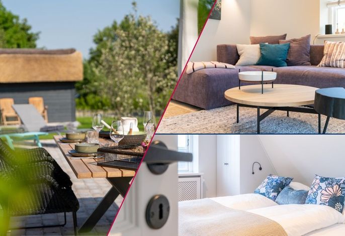 Die reetgedeckte Doppelhaushälfte Herzanker Hüs wurde im Jahr 2021 fertiggestellt und verfügt über 3 Schlafzimmer (eines mit begehbarem Kleiderschrank) und 2 Bäder und bietet somit komfortabel Platz für bis zu 6 Personen (ein Schlafzimmer mit ausziehbarem Bett) zuzüglich einer Kleinkinderaufbettung.