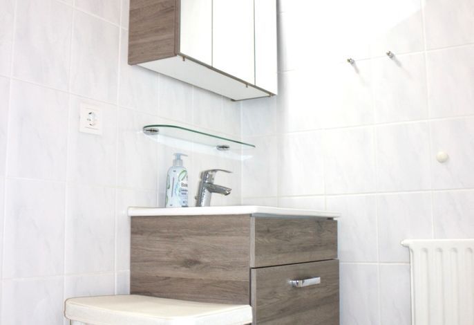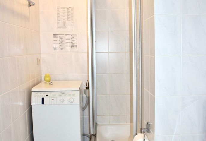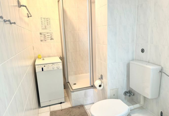 Das Badezimmer ist praktisch eingerichtet. Eine Wachmaschine steht dort kostenfrei zur Verfügung.