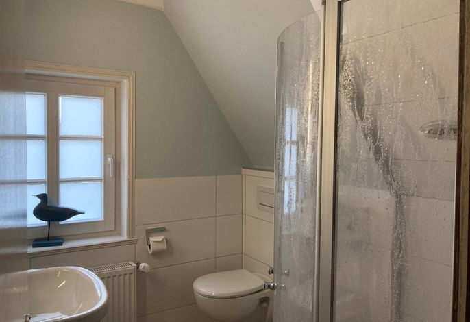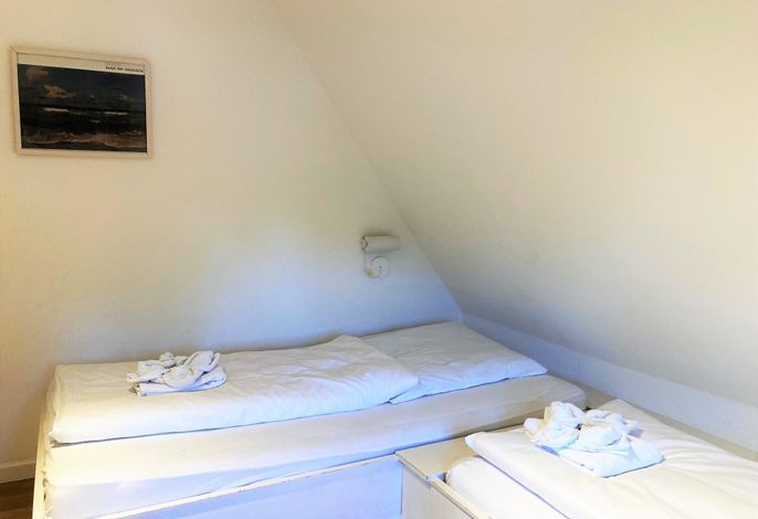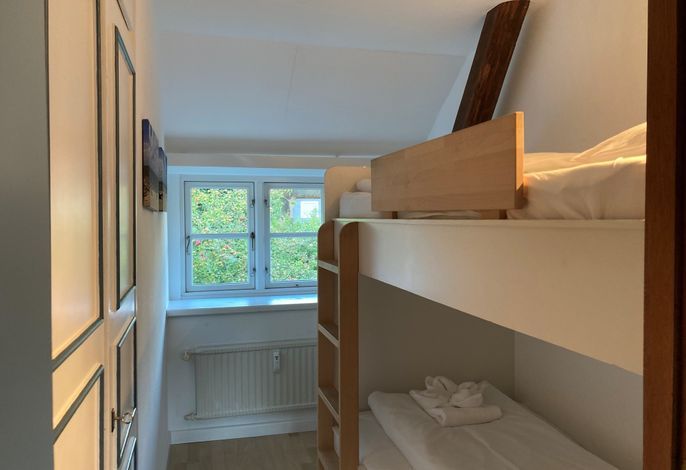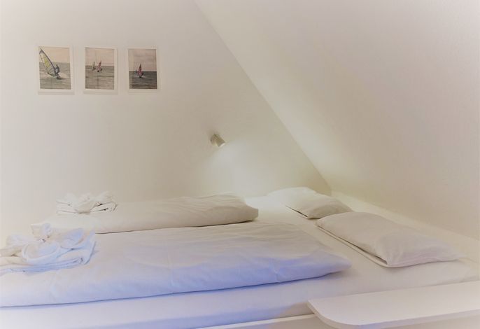 Unsere OG-Fewo Heuboden (ca.68 qm) liegt im ersten Obergeschoss des inseltypischen Reetdachhauses und lädt bis zu 6 Personen zu herrlichen Urlaubstagen ein. Die Ferienwohnung verfügt über ein großes, gemütliches Wohnzimmer mit WLAN, Telefon-Flatrate (deutsches Festnetz), Hifi-Anlage, Sat-TV und einer Essecke. Die separate Küche (Durchgangszimmer) ist gut ausgestattet und Geschirrspüler, Herd mit Backofen, Kühlschrank mit Gefrierfach, Kaffeemaschine, Toaster und Wasserkocher sind natürlich vorhanden. Das Badezimmer mit Dusche und Fenster ist modern gestaltet und zusätzlich gibt es noch ein Gäste-WC (ebenfalls mit Fenster). Des Weiteren gibt es noch drei Schlafräume mit einem Doppelbett (180 x 190 cm), zwei Einzelbetten (120 x 200 & 90 x 190cm) und 1 Etagenbett (90 x 190cm), die ruhige Nächte in Nieblum versprechen.