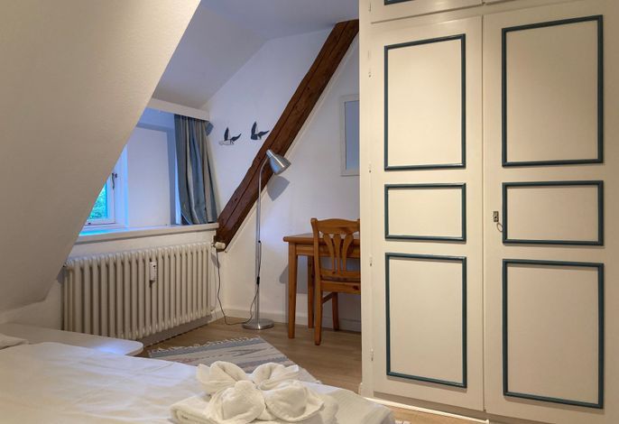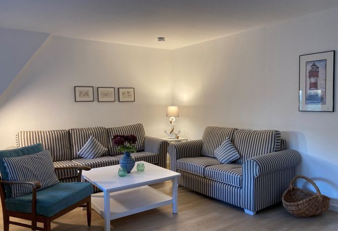 Mitten im Herzen von Nieblum, nahe des bekannten Nieblumer Ententeichs liegt das Haus an der Meere mit unserer OG-Fewo Heuboden, welche sich ideal für 4 bis 6 Personen anbietet.