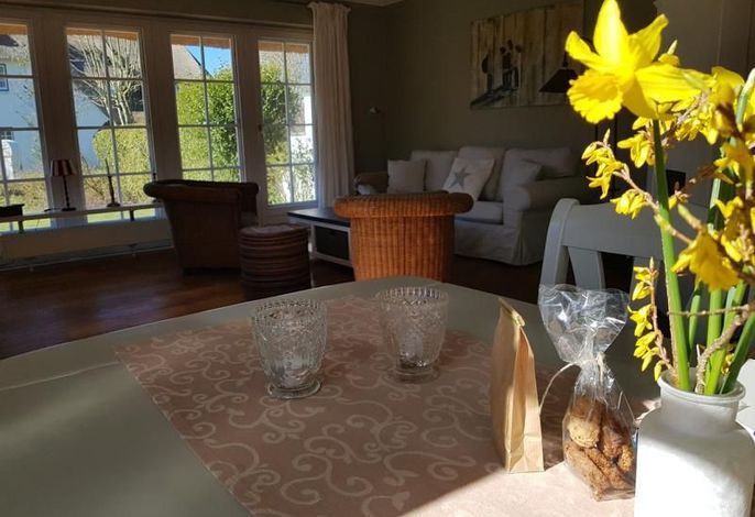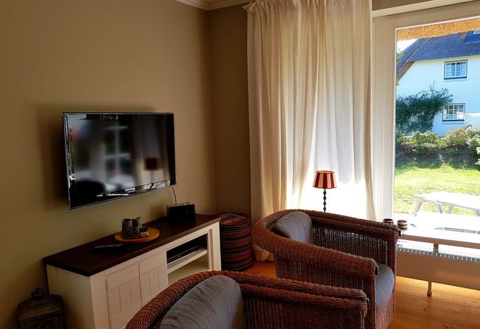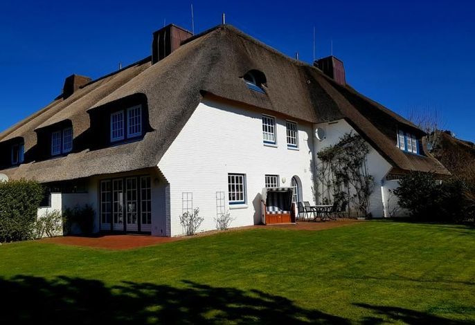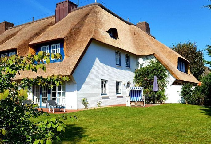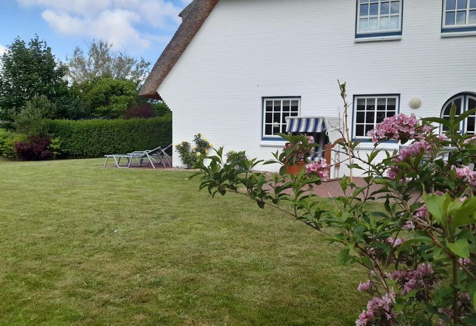 Hochstieg 12, welches in ruhiger Lage in Nieblum liegt, besitzt als Reihenendhaus im friesischen Stil einen großzügigem Garten sowie zwei Terrassen. Hier stehen sowohl ein Strandkorb als auch Gartenmöbel zur Verfügung.Das Wohnzimmer mit seinem Holzdielenboden und Kachelofen bietet auch in der kälteren Jahreszeit gemütliche Stunden im Friesenhaus.