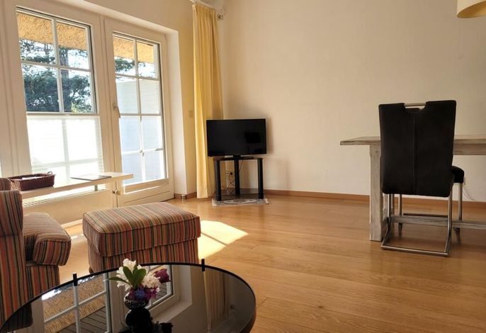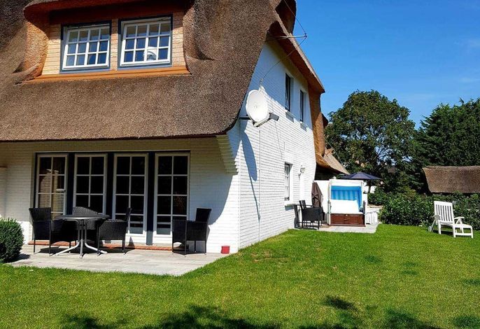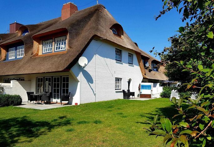 In diesem Friesenhaus mit zwei Terrassen sowie einem großen Garten und Strandkorb können Sie es sich gut gehen lassen. Das Wohnzimmer mit Kachelofen und Essbereich bietet hier auch in der kälteren Jahreszeit gemütliche Stunden unter Reet. Gäste-WC und ein Abstellraum sind ebenfalls vorhanden.