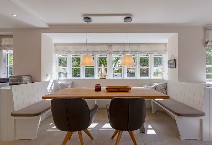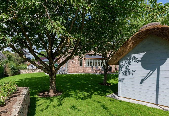 Wir begrüßen Sie im Hüs Holm in Alkersum auf Föhr. Diese schöne Haushälfte unter Reet mit Kirschbäumen im Garten ist Ihr Zuhause auf Zeit. Egal, zu welcher Jahreszeit Sie ihren Urlaub im Hüs Holm planen, an alles ist gedacht. Im Sommer geht es schon zum Frühstück auf die Terrasse (Bäckerei ist fußläufig zu erreichen), im Herbst erholen Sie sich in der eigenen Sauna, im Winter lodert das Feuer im Kamin nach einem langen Strandspaziergang, und im Frühling ist es Ihr perfekter Ausgangspunkt für ausgiebige Radtouren über die Insel. Hochwertig und mit viel Liebe zum Detail haben die Eigentümer diese Reetdachhaushälfte eingerichtet. Neben einem eingezäunten Garten gibt es auch eine Wallbox, um E-Autos zu laden. Alkersum wird auch als das Pferdedorf bezeichnet. Auf den vielen Wiesen werden Sie immer Pferde sehen. Mit nur wenigen Schritten gelangen Sie zum Museum Kunst der Westküste, welches über die Grenzen hinaus bekannt ist. Angeschlossen an das Museum ist ein sehr schöner Garten mit Café und Restaurant. Wann buchen Sie Ihre Auszeit im Hüs Holm?