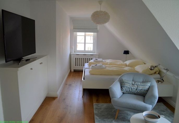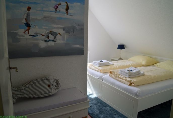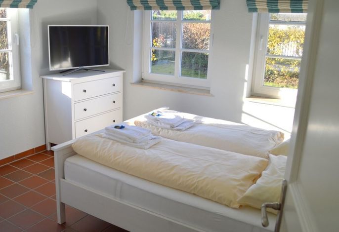 Ideal für Urlaub mit den Großeltern, ein Schlafzimmer mit Doppelbett und angrenzendem Duschbad befindet sich im Erdgeschoss.