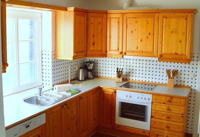 Geschirrspülmaschine, Backofen und 4 Kochfelder, Kaffeemaschine, Wasserkocher, Wäscheständer, Bügeleisen, Hausapotheke, Erste Hilfe Box, Waschmaschine und Trockner im Hauswirtschaftsraum, Parkplatz auf dem Grundstück für 4 PKW. Für unsere kleinsten Gäste stellen wir gern einen Kinderhochstuhl und ein Babyreisebett (gegen Aufpreis) zur Verfügung.