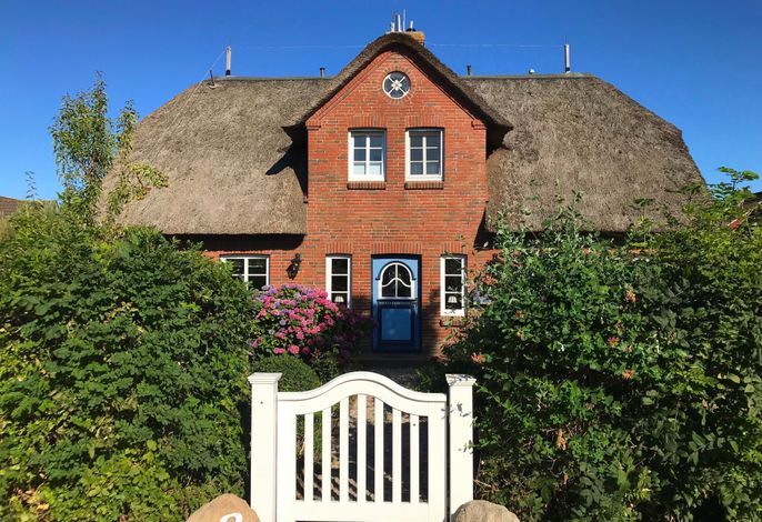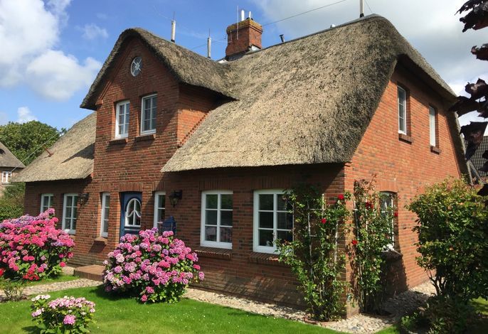 Das liebevoll eingerichtete, freistehende Einfamilienhaus unter Reet liegt in einer ruhigen Seitengasse mit idylischen Reetdachhäusern in Borgsum. Ihr Feriendomizil erstreckt sich über zwei Etagen mit fast 1000 m2 großem Garten. Alle Lieben dürfen mitkommen.