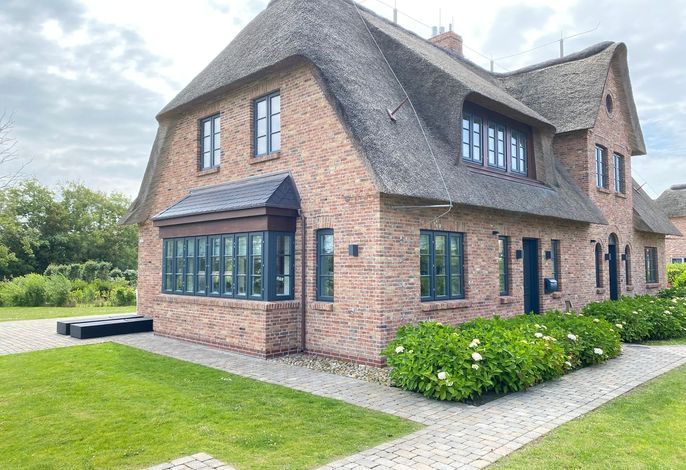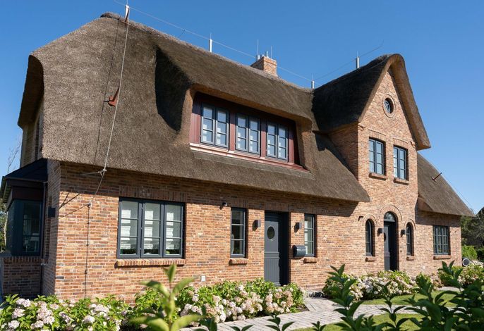 Die reetgedeckte Doppelhaushälfte Hüs zur Marsch verfügt über 3 Schlafzimmer und 2 Bäder und bietet somit komfortabel Platz für bis zu 6 Personen zuzüglich einer Kleinkinderaufbettung. Auch bis zu 2 Hunde sind hier herzlich willkommen.