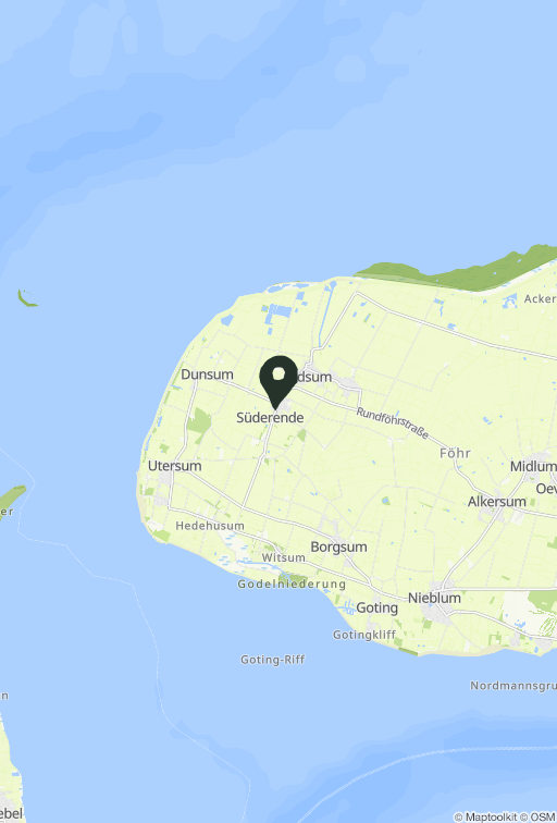 Der wahrscheinlich schönste Badestrand der Insel, jener in Utersum, ist über ruhige Seitenwege mit einer Entfernung von vier Kilometern bequem zu erreichen. Das Dorf Süderende ist ideal für einen Urlaub geeignet, in dem Entspannung im Vordergrund steht. Von hier aus lassen sich ausgiebige Spaziergänge und Fahrradtouren unternehmen. Auch die verkehrsarmen Marschwege mit Ihren langen Wegen laden zu ausgiebigen Touren ein. Karins Landcafé, ein gemütliches Café mit hausgemachten Kuchen, sowie Namine’s Deli mit frischen Brötchen, Delikatessen sowie Mittagstisch sind fußläufig entfernt. Heimische Produkte können bei den umliegenden Bauernhöfen erworben werden und die Kirche St. Laurentii mit ihren „redenden Steinen“ ist definitiv einen Besuch wert!