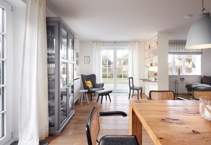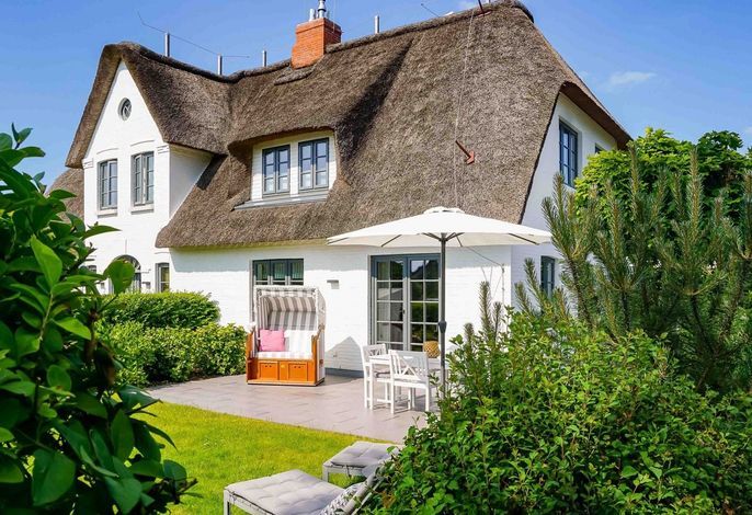 In dieser modernen Reetdachhaushälfte werden Sie sich sofort wohlfühlen und eine wundervolle Zeit verbringen. Unser Hus Andersen liegt in der Nähe zu De Meere - dem Ententeich in Nieblum. Von hier aus sind Sie in wenigen Minuten im Dorfkern. Laufen Sie an alten Kapitänshäusern vorbei und bewundern die zahlreichen Bauerngärten. Auch zum Strand von Nieblum sind es nur wenige Minuten. Alternativ genießen Sie die Sonnenstrahlen auf Ihrer großen Terrasse. In der Herbstzeit ist ein Urlaub genau das Richtige, um neue Kräfte zu sammeln. Platz ist für die gesamte Familie - dafür sorgen drei Schlafräume, wovon einer mit einem Etagenbett für die Kinder ausgerüstet ist. Ein Gaskamin und die Sauna lassen Sie diese Zeit genießen.