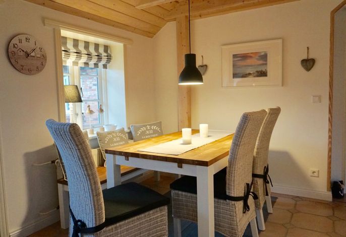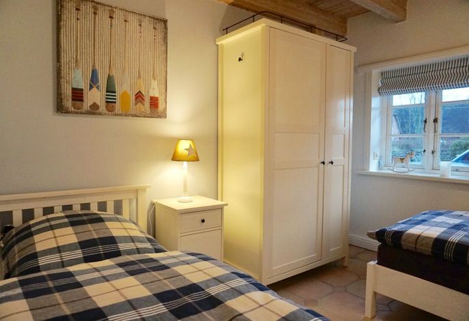 Die Ferienwohnung Hygge befindet sich in einem historischen Friesenhof in Wrixum und wurde zuletzt 2023 renoviert. Sie bietet Platz für 4 Personen und ein Baby und ist im maritimen Stil komfortabel eingerichtet. Die Wohnung befindet sich im Erdgeschoss und verfügt über einen großzügigen Wohn- und Essbereich mit einer modern ausgestatteten Küche. Zwei Schlafzimmer mit einem Doppelboxspringbett und zwei Einzelbetten befinden sich angrenzend an das Wohnzimmer. Das Badezimmer ist geräumig und verfügt über eine Dusche und eine Badewanne. Von der Terrasse aus, die mit Strandkorb und Gartenmöbeln ausgestattet ist, gelangt man direkt in den Wohnbereich. Für ein Babybett ist ausreichend Platz vorhanden, jedoch sind Haustiere nicht erlaubt. In der Garage kann ein PKW mit einer Breite bis 235 cm und einer Länge bis 490 cm geparkt werden. Fahrzeuge mit Dachbox oder Transporter passen aufgrund ihrer Höhe leider nicht in die Garage. Von der Unterkunft aus können ruhige Radtouren zu den umliegenden Inseldörfern oder durch die weite Landschaft unternommen werden. In weniger als 10 Minuten mit dem Fahrrad erreicht man den Ort Wyk mit seinen Sehenswürdigkeiten wie dem Hafen, der Promenade mit Geschäften und Gastronomie, dem Wellenbad, der Schutzstation Wattenmeer und dem langen Sandstrand mit Blick auf die Halligen. In Wrixum gibt es einen Bäcker, zwei Restaurants und einen Fahrradverleih in fußläufiger Entfernung von der Wohnung.
