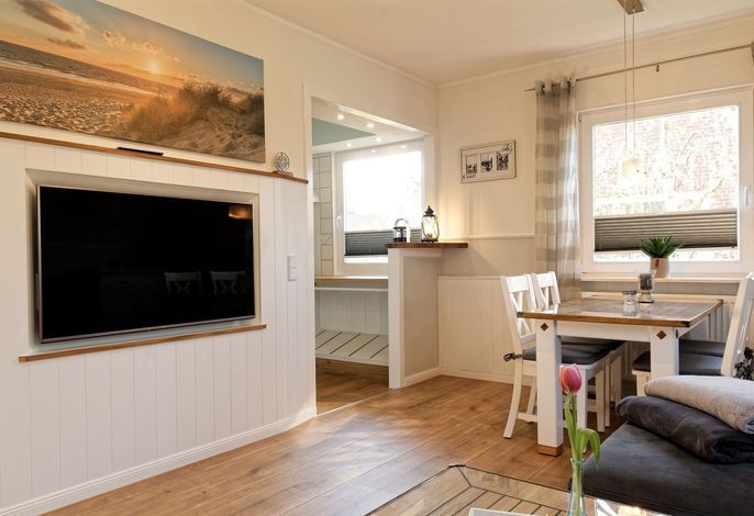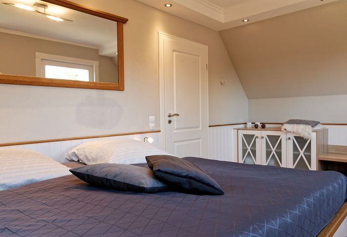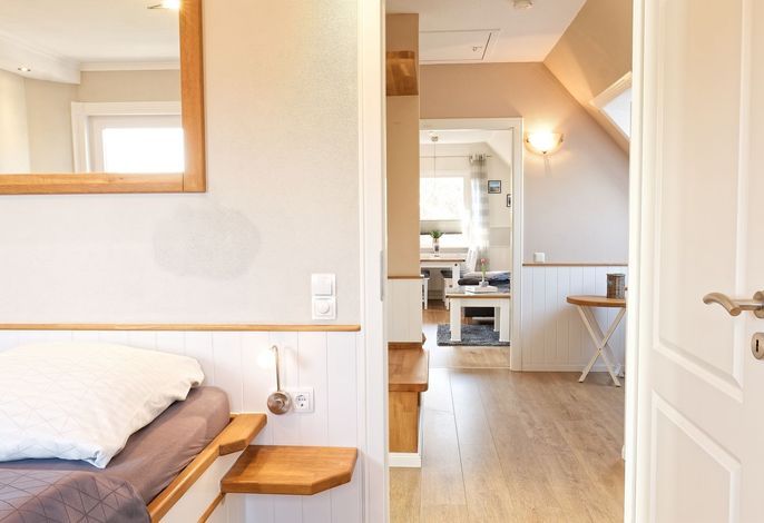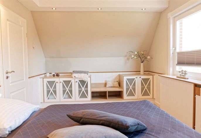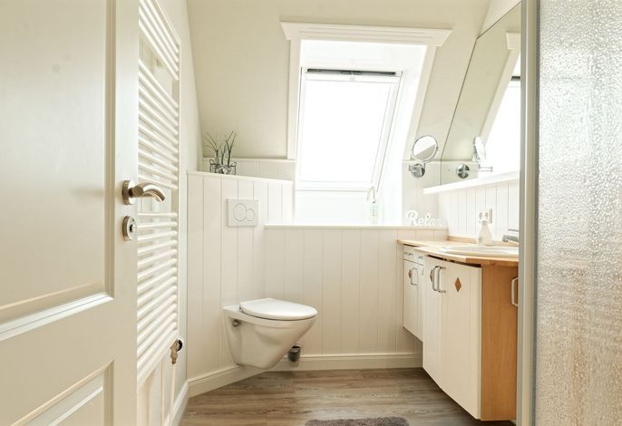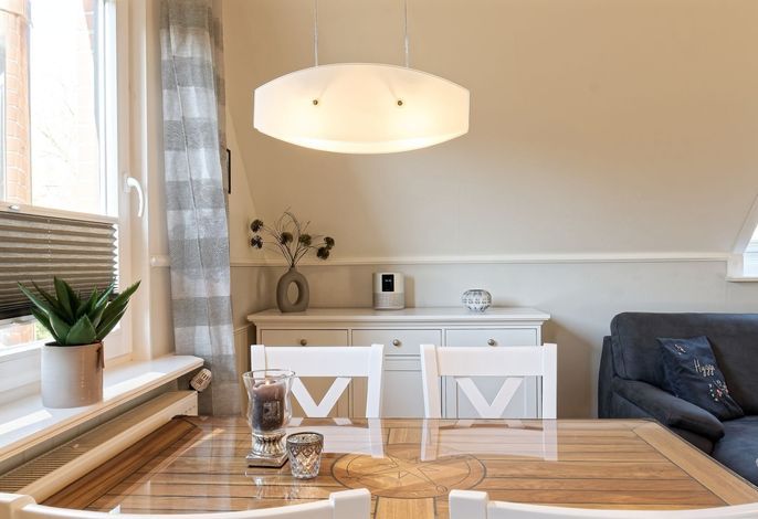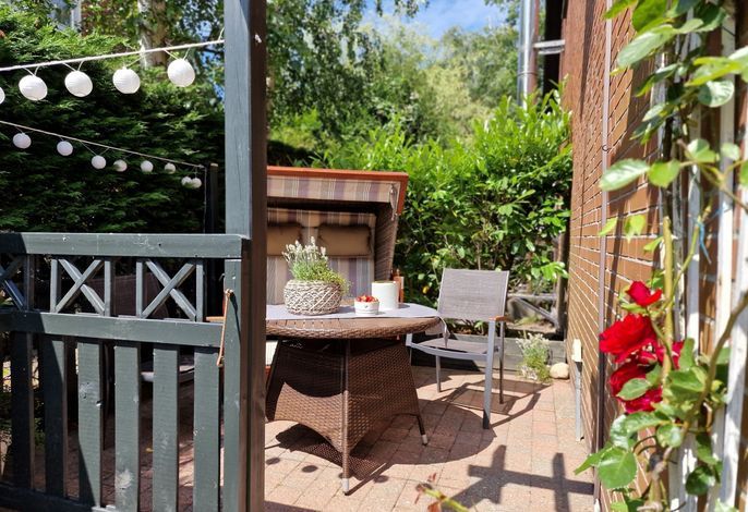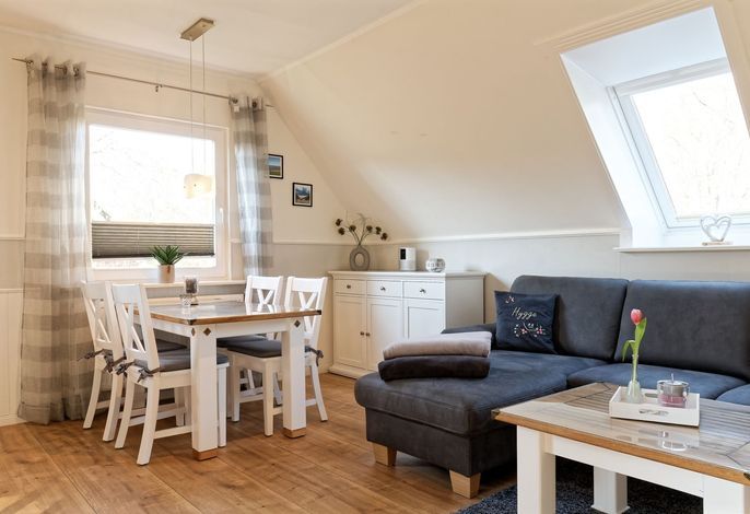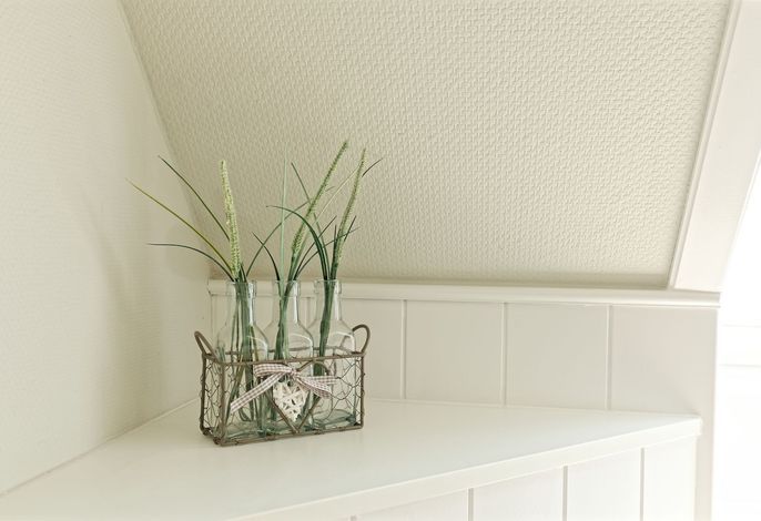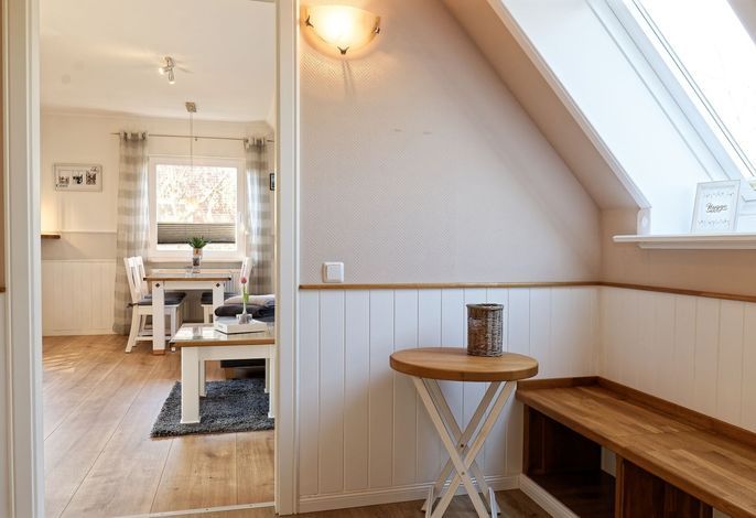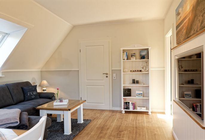 Genießen Sie Ihren Urlaub in unserer gemütlichen, liebevoll eingerichteten Ferienwohnung. Entspannen fängt beim Wohlfühlen an. Mit gemütlichen Dachschrägen, großzügigen, behaglichen Räumen befindet sich die Wohnung im 1. Obergeschoß. Neben dem Haus befindet sich eine lauschige Terrasse mit Sitzmöglichkeiten und Strandkorb sowie einen abschließbaren Fahrradabstellraum.