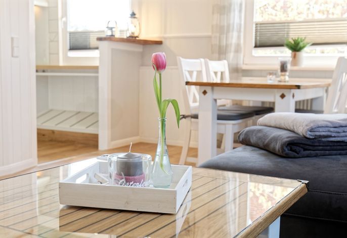 Unsere gemütliche Ferienwohnung zeichnet sich aus durch die liebevolle Einrichtung mit Einbaumöbeln und die hellen lichtdurchfluteten Räume, die sich auch durch die eingebauten Plissees und Jalousien abdunkeln lassen.