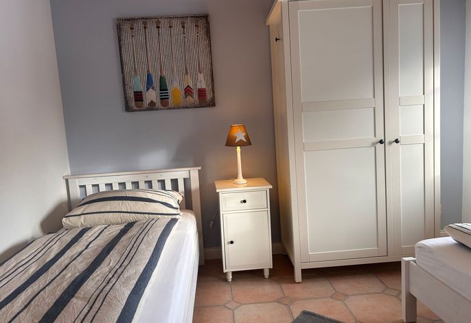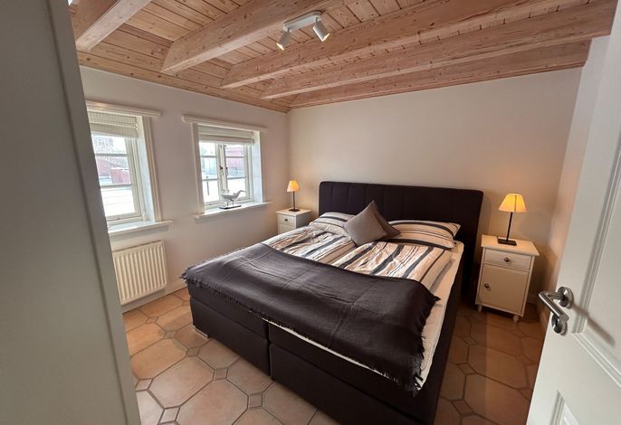 Die Ferienwohnung Hygge befindet sich in einem historischen Friesenhof in Wrixum und wurde zuletzt 2023 renoviert. Sie bietet Platz für 4 Personen und ein Baby und ist im maritimen Stil komfortabel eingerichtet. Die Wohnung befindet sich im Erdgeschoss und verfügt über einen großzügigen Wohn- und Essbereich mit einer modern ausgestatteten Küche. Zwei Schlafzimmer mit einem Doppelboxspringbett und zwei Einzelbetten befinden sich angrenzend an das Wohnzimmer. Das Badezimmer ist geräumig und verfügt über eine Dusche und eine Badewanne. Von der Terrasse aus, die mit Strandkorb und Gartenmöbeln ausgestattet ist, gelangt man direkt in den Wohnbereich. Für ein Babybett ist ausreichend Platz vorhanden, jedoch sind Haustiere nicht erlaubt. In der Garage kann ein PKW mit einer Breite bis 235 cm und einer Länge bis 490 cm geparkt werden. Fahrzeuge mit Dachbox oder Transporter passen aufgrund ihrer Höhe leider nicht in die Garage. Von der Unterkunft aus können ruhige Radtouren zu den umliegenden Inseldörfern oder durch die weite Landschaft unternommen werden. In weniger als 10 Minuten mit dem Fahrrad erreicht man den Ort Wyk mit seinen Sehenswürdigkeiten wie dem Hafen, der Promenade mit Geschäften und Gastronomie, dem Wellenbad, der Schutzstation Wattenmeer und dem langen Sandstrand mit Blick auf die Halligen. In Wrixum gibt es einen Bäcker, zwei Restaurants und einen Fahrradverleih in fußläufiger Entfernung von der Wohnung.
