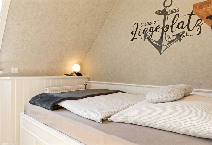 Genießen Sie Ihren Urlaub in unserer gemütlichen, liebevoll eingerichteten Ferienwohnung. Entspannen fängt beim Wohlfühlen an. Mit gemütlichen Dachschrägen, großzügigen, behaglichen Räumen befindet sich die Wohnung im 1. Obergeschoß. Neben dem Haus befindet sich eine lauschige Terrasse mit Sitzmöglichkeiten und Strandkorb sowie einen abschließbaren Fahrradabstellraum.