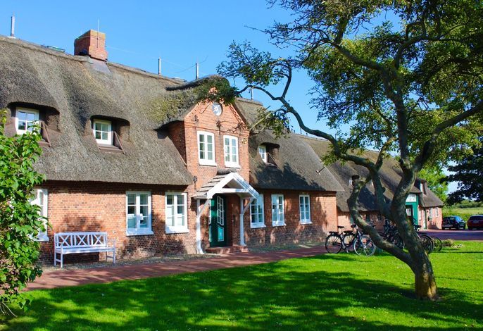 Der Herrenhof ist ein historischer Reetdachgutshof mit seinen Ursprüngen im Jahre 1722. Das Gebäudeensemble liegt auf einem gepflegten, parkähnlichen, 12.000 qm großen Grundstück am Ortsrand von Wrixum, in Umgebung anderer Reetdachanwesen, direkt an der Marsch. Wyk mit allen Sehenswürdigkeiten wie Hafen, Promenade mit vielen kleinen Geschäften und dem Sandstrand ist mit dem Rad schnell in 5 Minuten zu erreichen. In Wrixum befindet sich ein Bäcker, zwei Restaurants sowie ein Fahrradverleih.