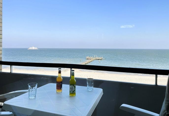 Windgeschützt in der Logia des Hauses Irma am Sandwall in Wyk genießen Sie bei jedem Wetter die Aussicht auf den Strand und das Wattenmeer. Ein besonders schöner Moment ist, wenn die Sonne am Meereshorizont erwacht..Traumhafter...