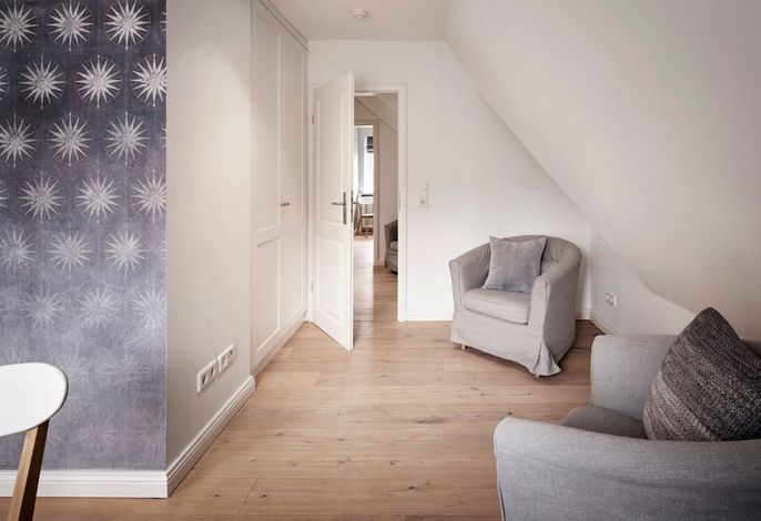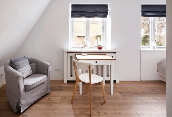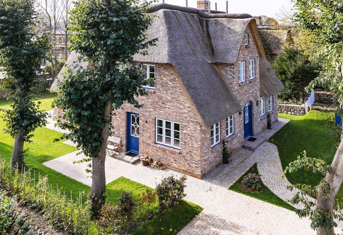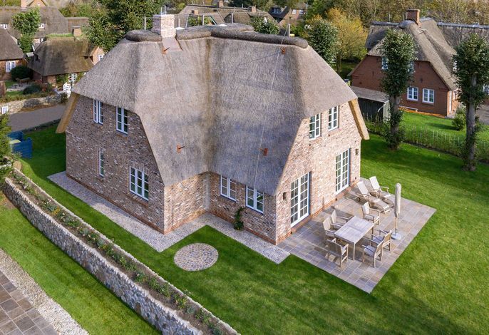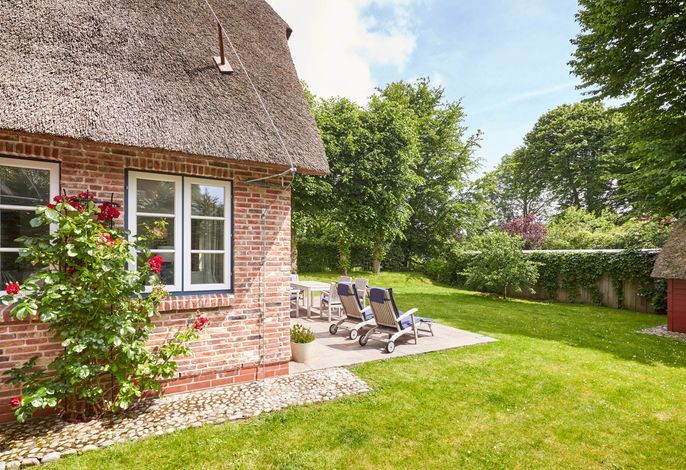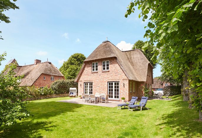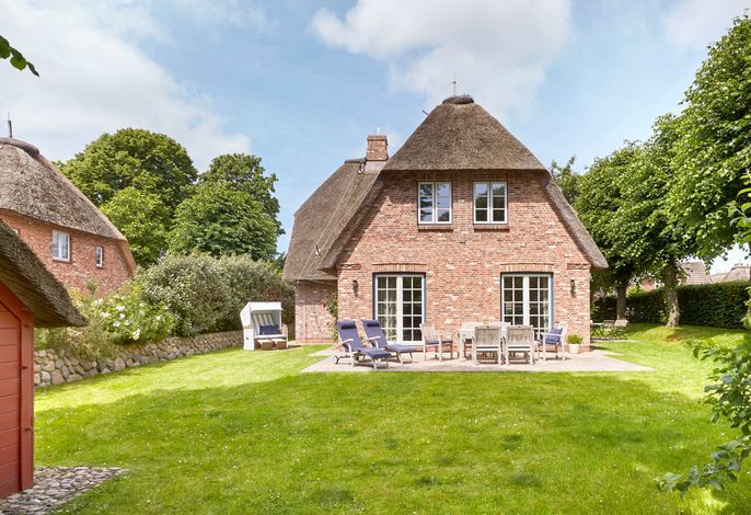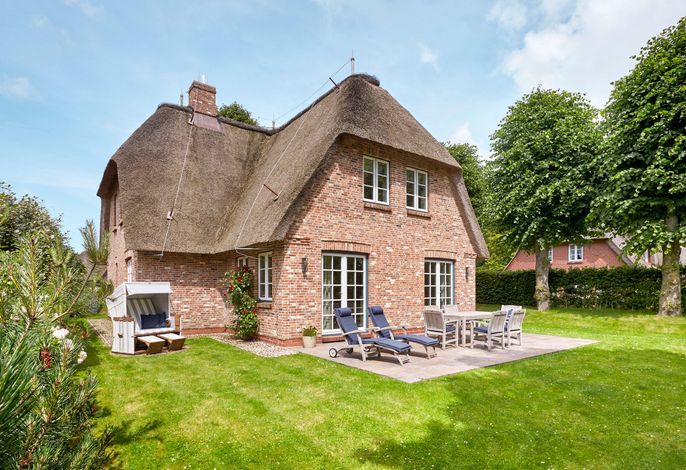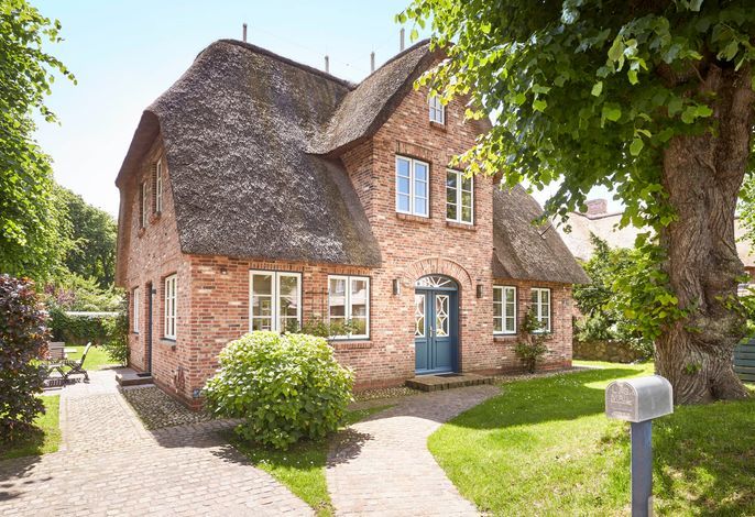 Unser exklusives, mit viel Liebe zum Detail eingerichtete Reetdachhaus mit einer Mischung aus Gemütlichkeit und Moderne lässt keine Wünsche offen. Aus jedem Fenster haben Sie den Blick auf ein wahres friesisches Postkartenmotiv. Das Haus liegt im wunderschönen Ort Nieblum in unmittelbarer Nachbarschaft der alten Kapitänshäuser. Nur wenige Gehminuten entfernt befinden sich schöne Restaurants, gemütliche Kneipen und Einkaufsmöglichkeiten. Der herrliche Nieblumer Sandstrand mit Surfschule ist bequem mit dem Fahrrad oder auch zu Fuß zu erreichen und bietet vielfältige Möglichkeiten zur Entspannung. Auch zum Golfplatz fahren Sie nur ein kurzes Stück. Der große Garten mit 2 Terrassen und die traumhafte Lage des Hauses mit Blick ins Grüne bieten Ihnen ein erholsames Umfeld, welches Sie selbst auf der Insel Föhr nicht oft finden.