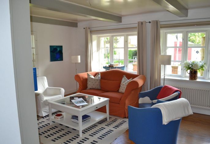 Die Ferienwohnung überzeugt durch ihre barrierefreie Gestaltung und ihren freistehenden Charakter. Ein Parkplatz steht zur Verfügung. Der Außenbereich ist mit einem Strandkorb ausgestattet, ideal, um der Natur zu lauschen. Ein Arbeitsplatz ermöglicht entspanntes Arbeiten. Der Blick auf den Garten schafft eine angenehme Atmosphäre. Hier findet jeder Erholung und Entspannung.