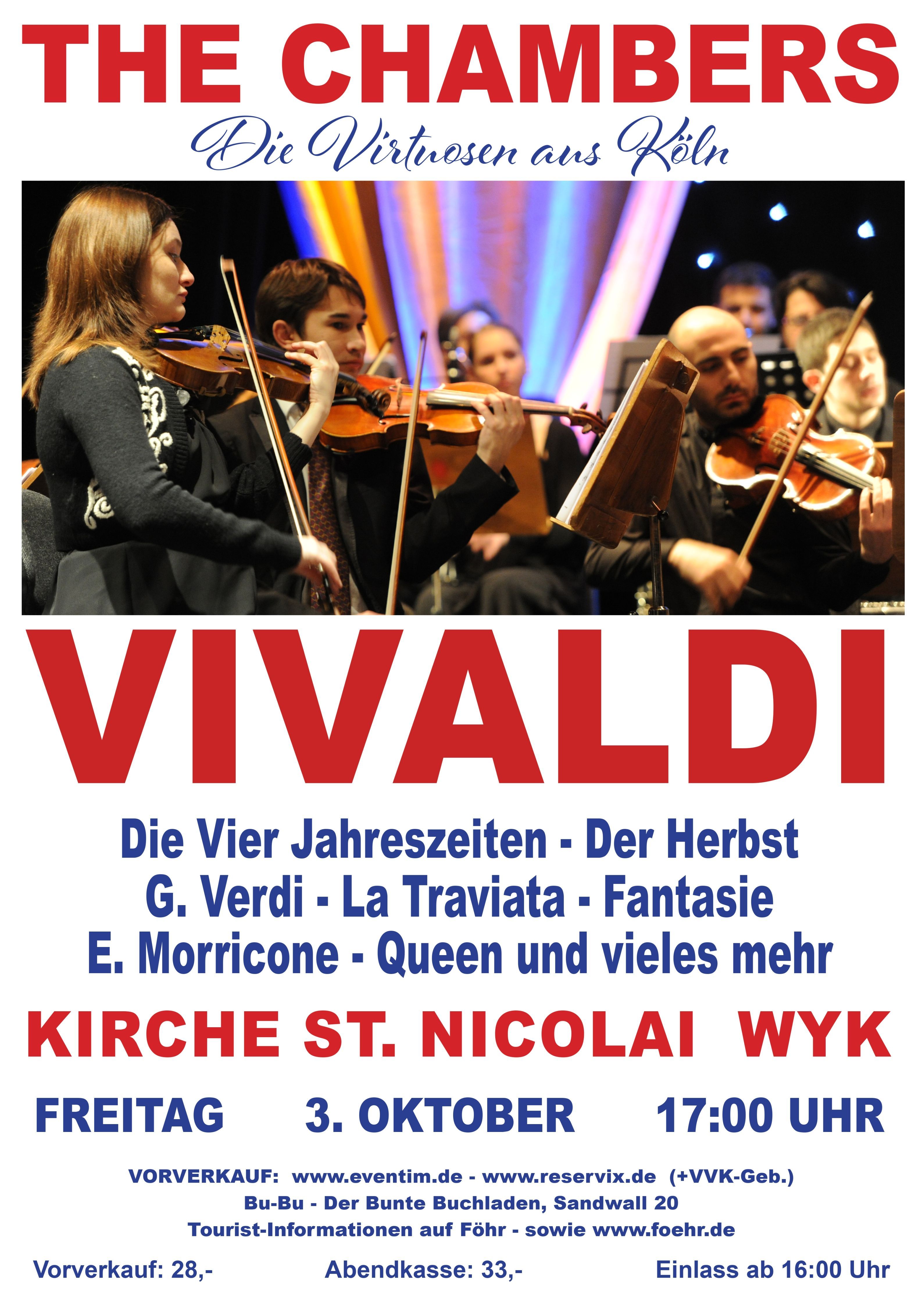 Erneutes Gastspiel vom international besetzten Kammerorchester „The Chambers – die Virtuosen aus Köln“ am Freitag, dem 3. Oktober, um 17.00 Uhr in der Kirche St. Nicolai in Wyk.