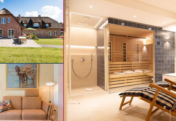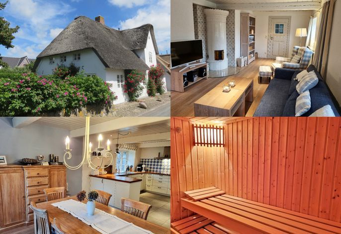 WrixumSchönes Reetdachdomizil in ländlicher Idylle in Wrixum auf Föhr, Ohl Dörp 49, Nr. 3; vom DTV mit 4 Sternen ausgezeichnet. Gemütliche 4-Zimmer Doppelhaushälfte 90qm auf einem ca. 400 qm großen...Olhörnstieg 6, Whg. 2 Inselliebe
