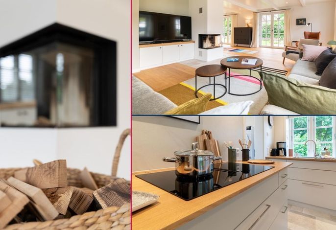 Zu den Highlights der Ferienunterkunft zählen wir u. a. den Kamin, die hauseigene Sauna, die hochwertige Ausstattung sowie die zwei Terrassenplätze.