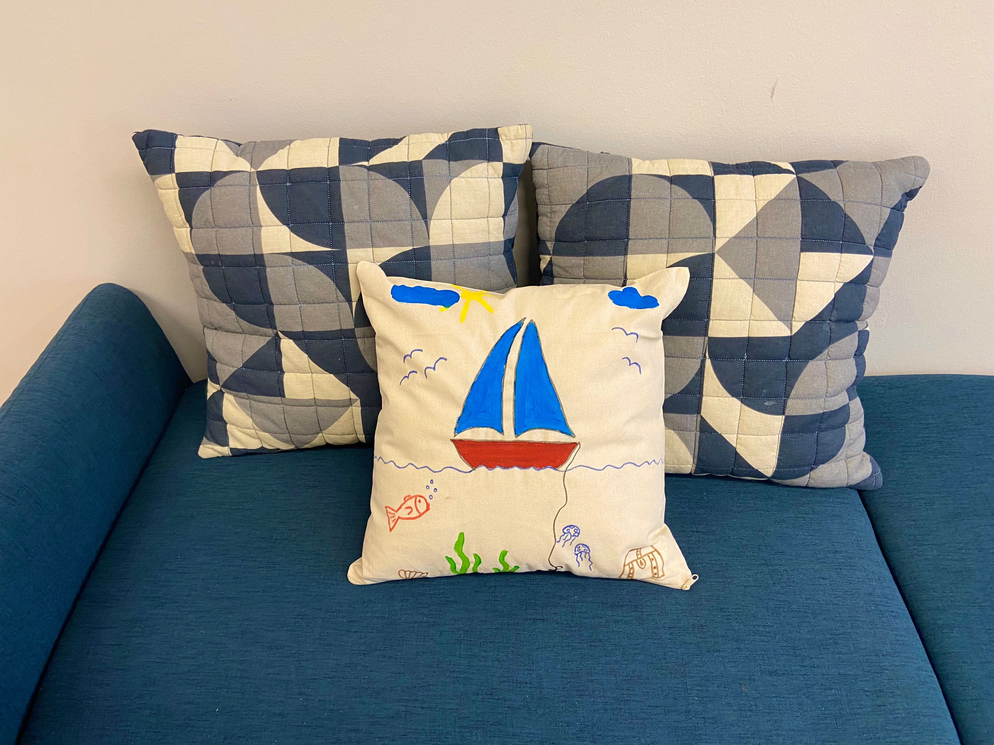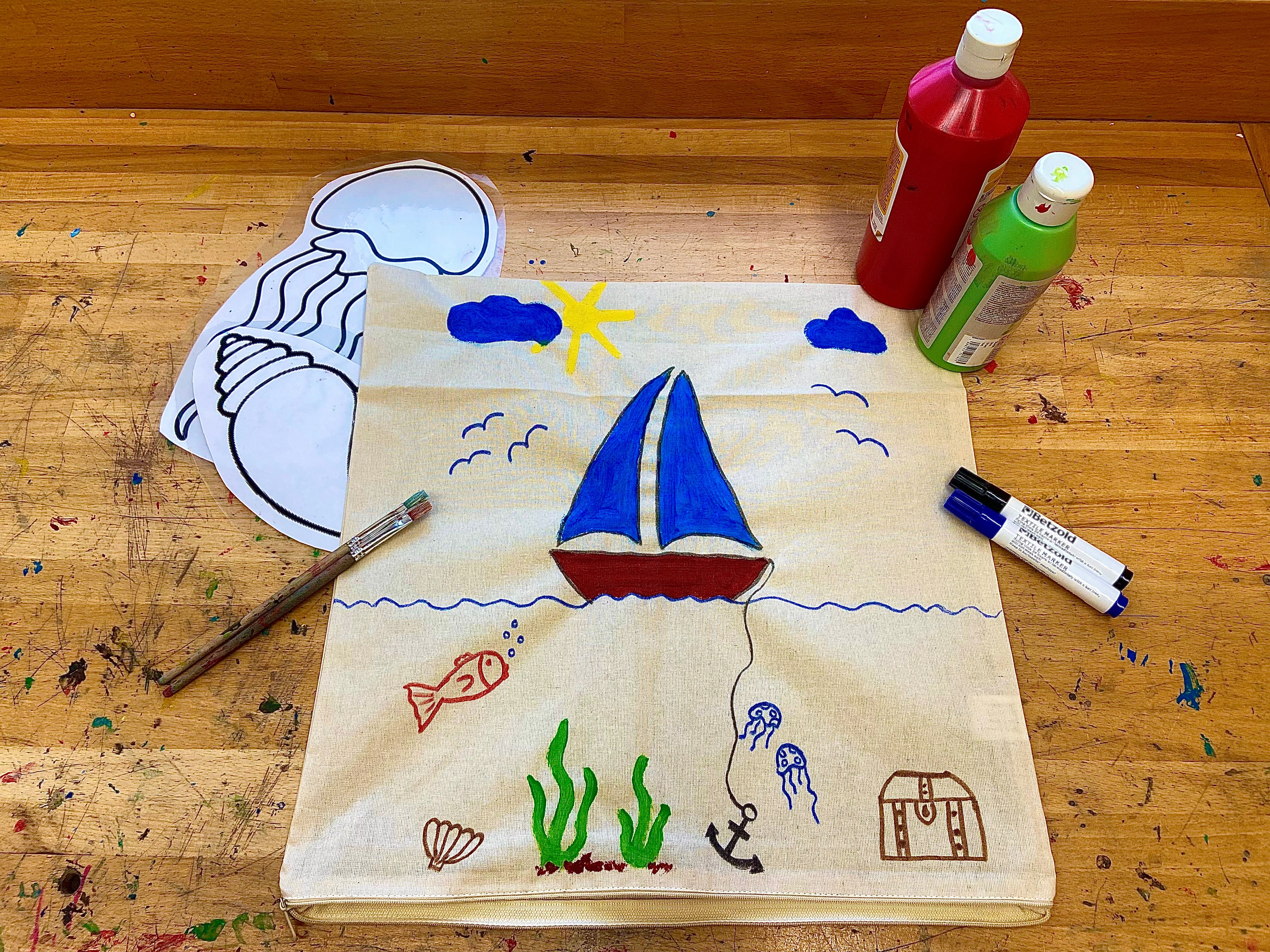 Ausgestattet mit unseren Lieblingsfarben bemalen wir unseren ganz eigenen Kissenbezug.