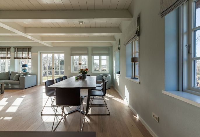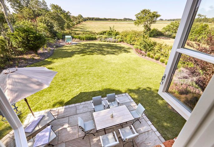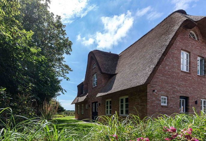 Klaar Kimming - ein exklusives Einzelhaus unter Reet im Inseldorf Nieblum mit freiem Blick in die Natur und nur ein paar Gehminuten vom Strand mit Surf- und Segelschule entfernt.