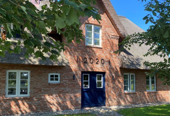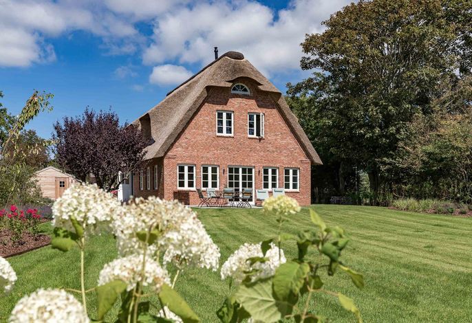 Klaar Kimming - ein exklusives Einzelhaus unter Reet im Inseldorf Nieblum, mit freiem Blick in die Natur und nur ein paar Gehminuten vom Strand mit Surf- und Segelschule entfernt.