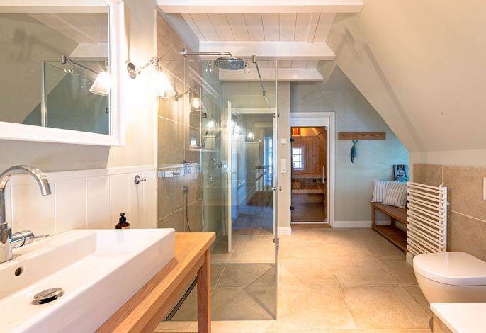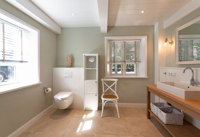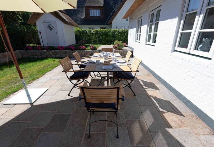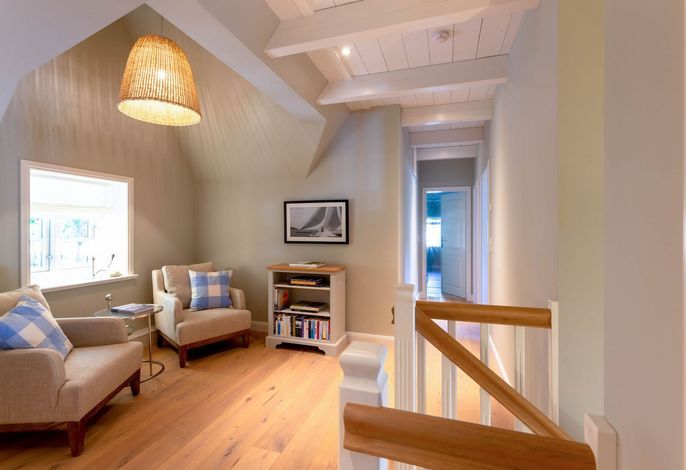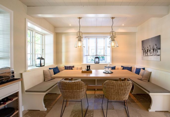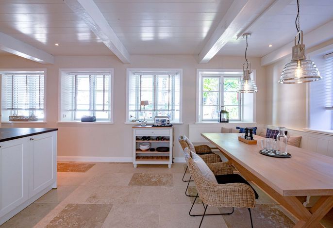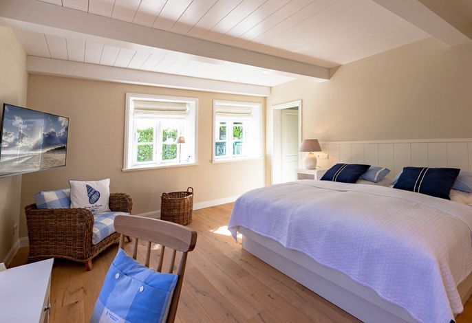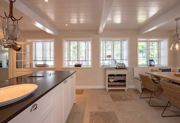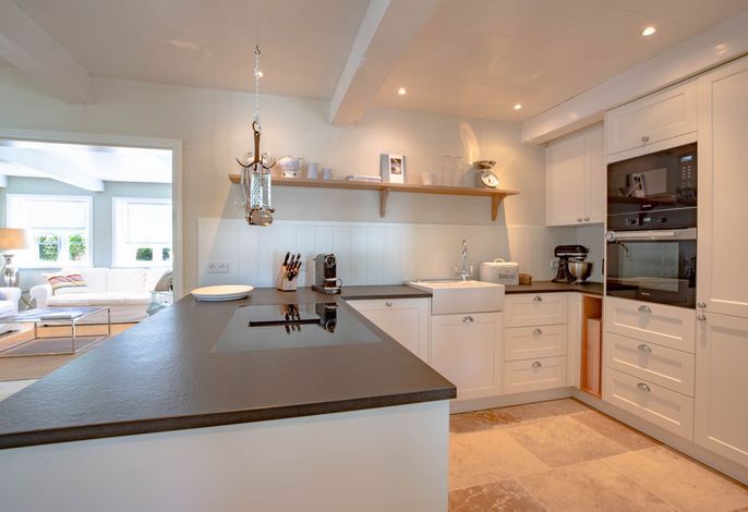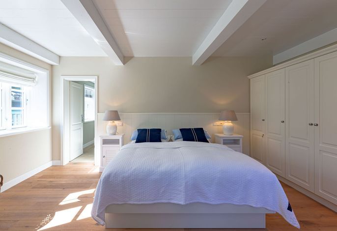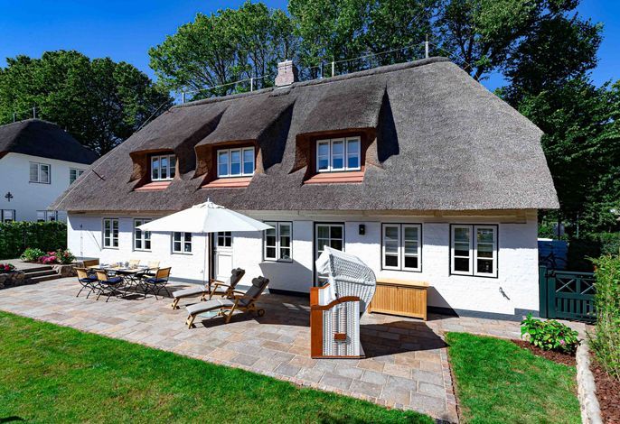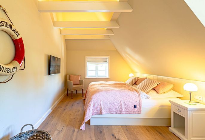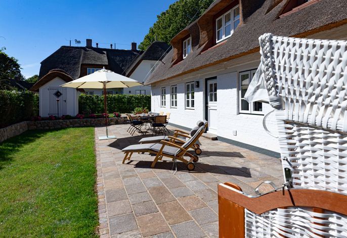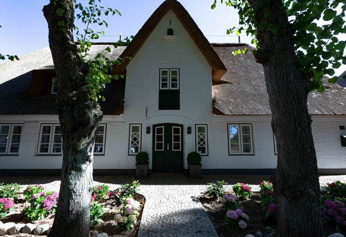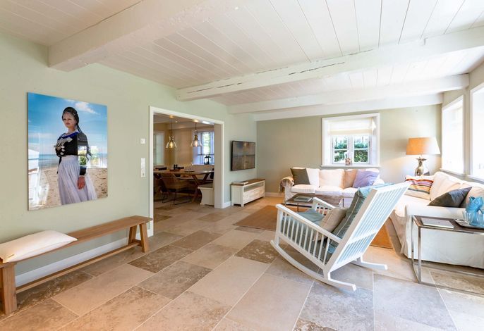Die „Küstenliebe Nieblum“ befindet sich im Dorfkern von Nieblum, dem wohl schönsten Dorf der Insel. Das denkmalgeschützte, 200qm große Kapitänshaus von 1799 wurde mit viel Sorgfalt und Liebe hochwertig renoviert und stilvoll eingerichtet. Im Haus finden 6 Personen Platz. Ein Schlafzimmer befindet sich im Erdgeschoss, zwei weitere im Obergeschoss. Jedes Schlafzimmer verfügt über ein eigenes Bad. Ein separates Gäste-WC befindet sich zusätzlich im Erdgeschoss. Die offene Küche bietet einen exklusiven Herd und eine hochwertige Küchenausstattung. An der straßenabgewandten Südseite des Hauses liegt der schöne, umschlossene Garten mit Friesenwall. Der historische Kachelofen von 1840, aber auch die Natursteinböden, die großzügige Diele mit separatem Garderobenraum und die offene Balkendecke im oberen Schlafzimmer geben der „Küstenliebe Nieblum“ besonderen Charme. Der idyllische Friesenort Nieblum ist geprägt von Bauerngärten, verwinkelten Gassen und Friesenhäusern und wurde bereits als schönstes Dorf Deutschlands ausgezeichnet. Bäckerei, Fisch- und Feinkostgeschäft, Fahrradverleih, Restaurants und mehr befinden sich in fußläufiger Nähe. Der Strand ist 1200 m entfernt. Wer das Besondere sucht und sieht, ist in der „Küstenliebe Nieblum“ richtig