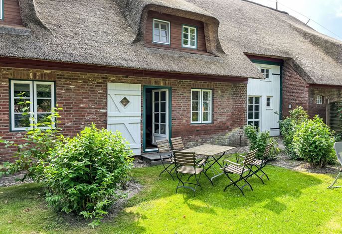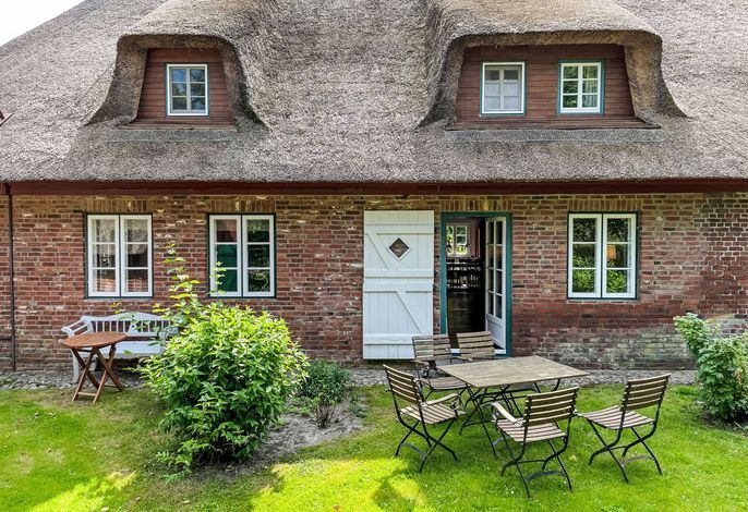 Gemütliches, historisches Landhaus Laerchenshus, auf 2 Stockwerken. Im Ort Borgsum, 7 km vom Zentrum von Wyk auf Föhr, 1.5 km vom Meer, 1.5 km vom Strand. Zur Mitbenutzung: grosser, schöner, gepflegter Garten. Zur...