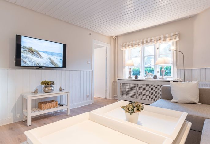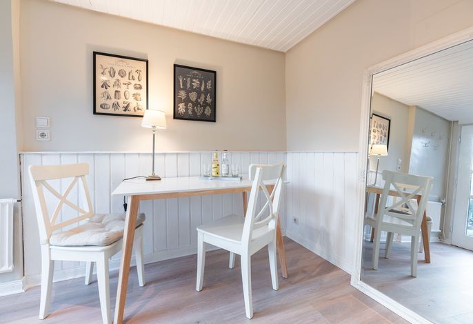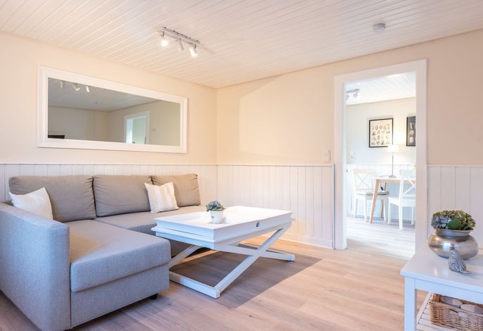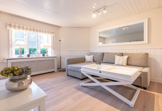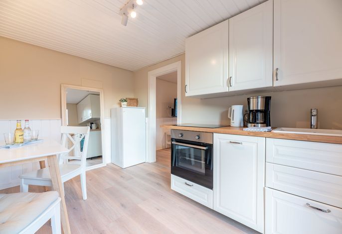 Ein kleines Juwel inmitten von Utersum. Diese wunderschöne und übrigens ganz im Skandi Stil eingerichtete Ferienwohnung auf Föhr ist mit einem Doppelbett sowie einem Schlafsofa ausgestattet. 2022 von Grund auf saniert und mit tollen Extras wie USB/ USB Mini Steckdosen an jedem Nachttisch, integriertem Radio im Badezimmer, hochwertigen original Tempur-Matratzen sowie einer komplett neuen Küche, 43 Zoll großem Fernseher ausgestattet, um Ihnen eine wunderbare Auszeit und die bestmögliche Entspannung bieten zu können. Direkt vor dieser Wohnung befindet sich ihre eigene Terrasse mit zartgrau gehaltenen Terrassenmöbeln und dem wohl besten Bäcker um die Ecke.