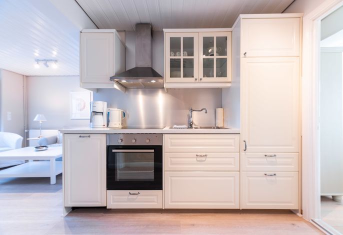 Ausstattung: Fernseher (Sat-TV), Minianlage mit CD-Player, Backofen mit Ceranfeld, Kaffeemaschine, Wasserkocher, Toaster, Föhn, WLAN