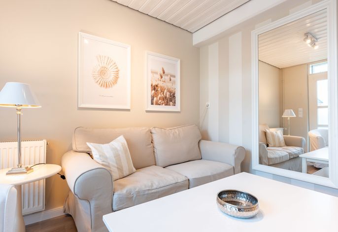 Die Wohnung Süderaue (ca. 36 qm) für 1-3 Personen befindet sich im Erdgeschoss unseres Reetdachhauses mit separatem Eingang und eigener Terrasse direkt vor der Tür.