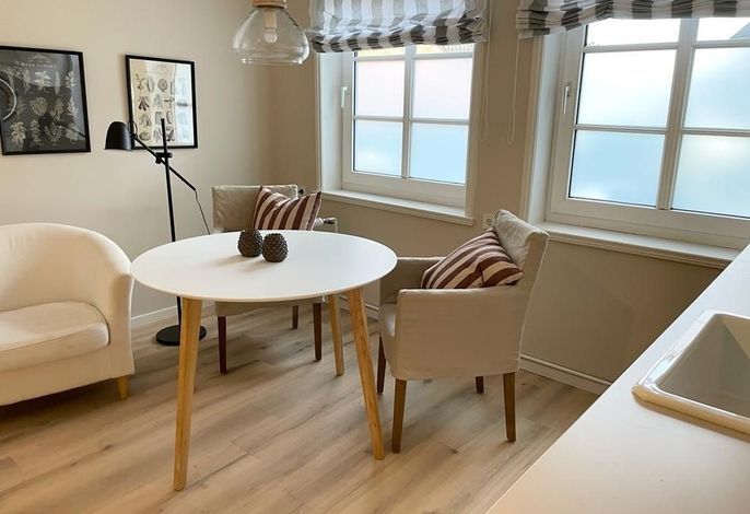 Die gemütliche und geschmackvoll eingerichtete Wohnung ist für 2 Personen und empfängt Sie im nordischen Stil. Sie wurde im Dezember 2021 komplett neu modernisiert und neu eingerichtet. In dieser, gemütlich im Nordischen Landhausstil eingerichteten Ferienwohnung steht Ihnen ein heller geräumiger Wohn- und Schlafbereich mit angegliederter Küche zur Verfügung.