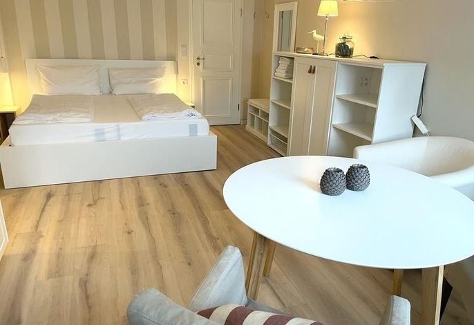 Dieses schöne 1-Zimmer Appartment Hilligenlei verfügt über ein Doppelbett und ist im Rahmen der Renovierung 2022 kernsaniert worden und mit tollen Extras wie neuer Einbauküche, USB/ USB Mini Steckdosen an jedem Nachttisch, integriertem Radio im Badezimmer, hochwertigen original Tempur-Matratzen ausgestattet sowie einem Flatscreen TV, um Ihnen eine wunderbare Auszeit und die bestmögliche Entspannung bieten zu können. Im Hortensiengarten direkt vor der Haustür befinden sich viele wunderschöne und idyllische Sitzgelegenheiten, die zum gemütlichen Café und Kuchen einladen.
