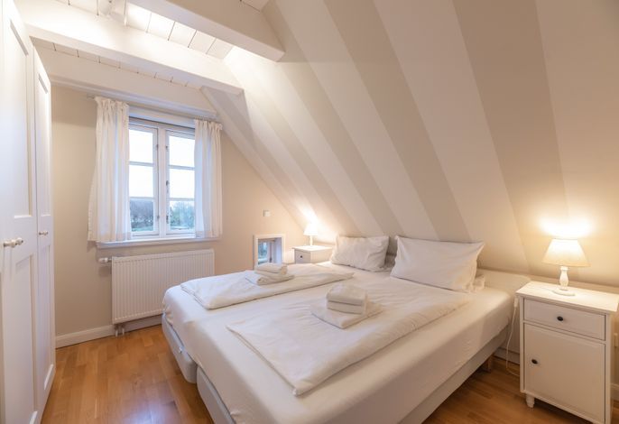Die zwei Schlafzimmer mit jeweils einem Doppelbett (Liegefläche 180×200, oder einzeln gestellt jeweils 90×200) laden zum Schmökern und Träumen ein.