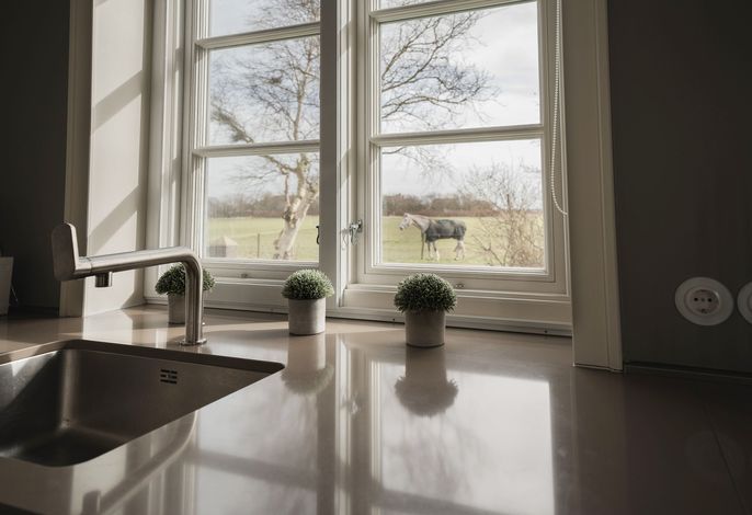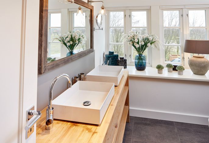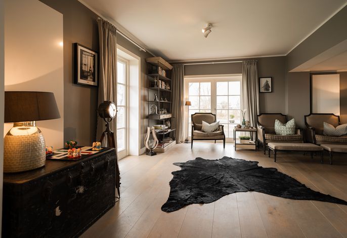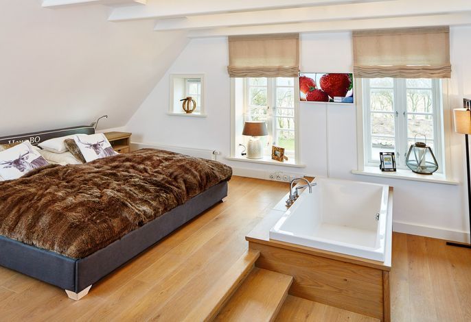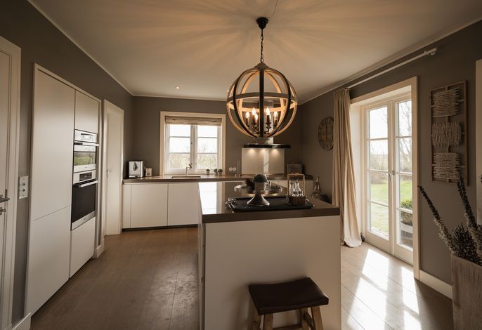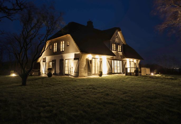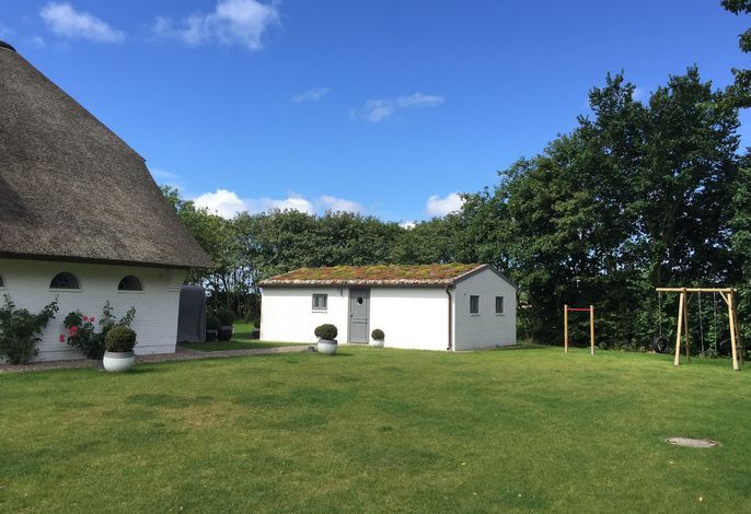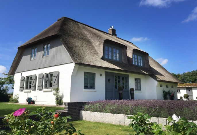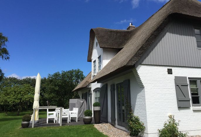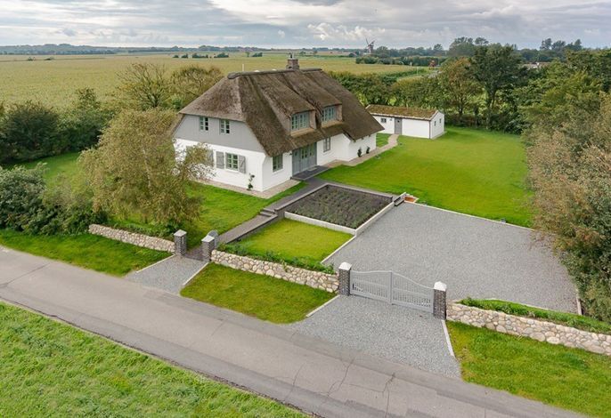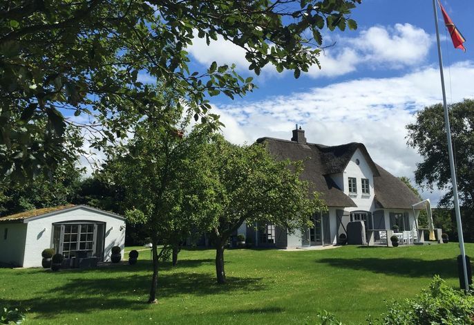 Mit viel Liebe zum Detail und in höchster Qualität ausgestattet, finden Sie in diesem Reetdachhaus Ruhe, Entspannung und Weitblick. Mitten in der Natur, umgeben von ländlichem Ambiente. Urlaub wie im eigenen Zuhause genießen - nach dieser Philosophie haben die Besitzer das Landhaus BO konzipiert und besonders anspruchsvoll ausgestattet. Ein charmantes Grundstück mit alten Obstbäumen und drei großzügigen Terrassenflächen laden zum Verweilen im Garten ein. In der kälteren Jahreszeit bieten die Sauna im separaten Sauna- und Gästehaus sowie ein Kamin im Haupthaus eine perfekte Gelegenheit für erholsame und gemütliche Stunden. Eine große und helle Bulthaup-Küche mit allen technischen Geräten lädt zum Kochen ein. Esszimmer und Wohnbereich gehen ineinander über und lassen den Blick zu auf die großen Terrassenflächen nach Süden und Westen. Die perfekten Voraussetzungen für einen fantastischen Urlaub im kleinen oder großen Kreis, denn dieses Haus bietet sogar Platz für zwei Familien. Der idyllische Ort Oldsum verfügt über einen eigenen kleinen Supermarkt und Bäcker und ist über die Grenzen Föhrs für seine Schönheit bekannt. Die Fähre sowie die weitläufigen Strände in Utersum, Nieblum und den Südstrand in Wyk erreichen Sie in nur 10 Minuten mit dem Auto