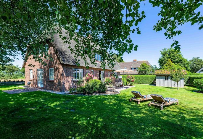 Ein herzliches Willkommen in unserem wunderschönen, reetgeckten Einzelhaus Landhaus de Meere. Es liegt schön und ruhig am Rande der Felder und doch gleichzeitig zentral in Nieblum in der Nähe zum Teich „De Meere“. Zum herrlichen Sandstrand sind es nur wenige Minuten. Genießen Sie die gemütliche, hochwertige Einrichtung und die Großzügigkeit der lichtdurchfluteten Räume in Ihrem Reethaus. Der liebevoll angelegte Garten –mit Blick über die Wiesen verleitet zum Träumen und wird Sie begeistern. Einfach das perfekte Haus für Sie und Ihre gesamte Familie. Besuchen Sie uns und genießen Sie eine herrliche Urlaubszeit.