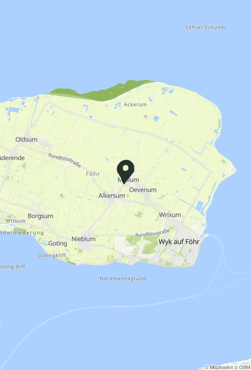 Das Ferienhaus liegt in Midlum im Herzen von Föhr, sodass die schönsten Fahrrad- und Spazierwege direkt vor der Haustür liegen. Ein bei Einheimischen und Feriengästen beliebtes Restaurant, der Midlumer Krog, befindet sich in der Ortschaft. Angrenzend an Midlum liegen die Nachbardörfer Oevenum und Alkersum nur ca. einen Kilometer entfernt. Eine Bonbonmanufaktur, ein Kunstmuseum, verschiedene Restaurants und Cafés, zwei Landbäcker und verschiedene Spielplätze liegen somit in greifbarer Nähe. Die Midlumer Marsch zeichnet sich durch weitläufige Landschaftsbilder und diverse Rad- und Wanderwege aus, sodass Radfahrer und Jogger hier auf Ihre Kosten kommen.