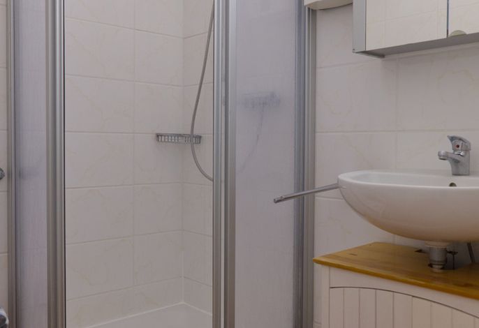 (0,90 x 1,80) sowie ein modernes Duschbad. Für die kleinen Gäste steht ein Babybett sowie ein Kinderhochstuhl zur Verfügung.