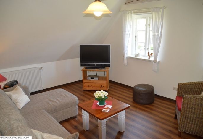 Die Wohnung LEE ist mit zwei Schlafräumen, einem Wohnraum mit SAT-TV, Radio mit CD-Spieler, einer modernen, vollausgestatteten Küche mit Geschirrspüler und Mikrowelle, Duschbad und Flur eingerichtet. Kinderbetten und Hochstühle stehen für die Kleinsten kostenfrei bereit.