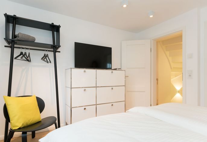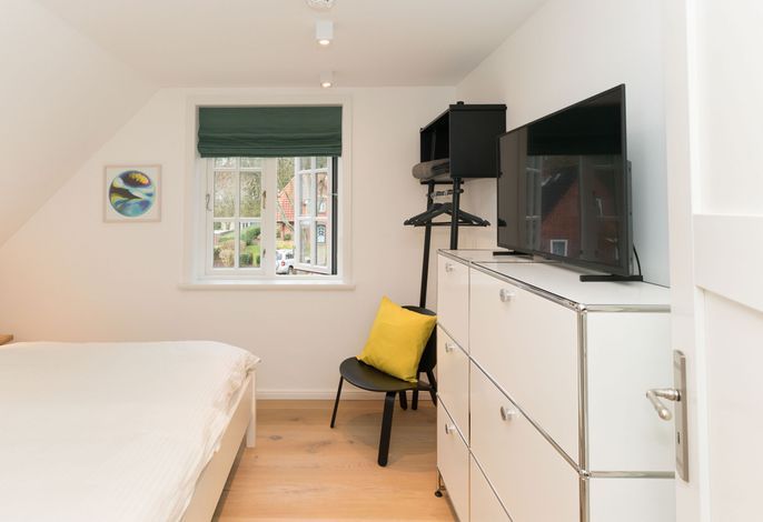 Ferienhaus Leichte Brise Meer, Sonne und immer eine leichte Brise - das ist Föhr und das ist die ruhig und zentral gelegene Leichte Brise“ in Wyk. Moderne, klare Linien, nordische Leichtigkeit, massive Eichendielen und Designklassiker auf 105 qm über 3 Etagen als perfekte Urlaubsbasis für 4 Erwachsene und 1 Kleinkind (bis 3J.). Große Fensterflächen, Artemide und Gubi Leuchten schaffen lichtdurchflutete Räume. Im Erdgeschoss treffen USM Haller und Panton Stühle auf einen alten Eichentisch und eine Küche mit kompletter Ausstattung. Zwei gemütliche Sofas und ein moderner Ohrensessel sind die Relaxgrundlage für Fernsehabende, Lesestunden oder ein gutes Glas Wein am knisternden Kamin. Die Schlafzimmer jeweils mit Bettwäsche in Komfortgröße (155x220) und En-suite Bäder mit großer Dusche, versprechen Erholung im Schlaf. Und falls es im Urlaub doch mal eine E-Mail zu schreiben gibt, finden Sie einen kleinen Arbeitsplatz im Dachgeschoß. Die nach Süden ausgerichtete Terrasse mit großem Tisch und Standkorb schließt die Hausführung ab.