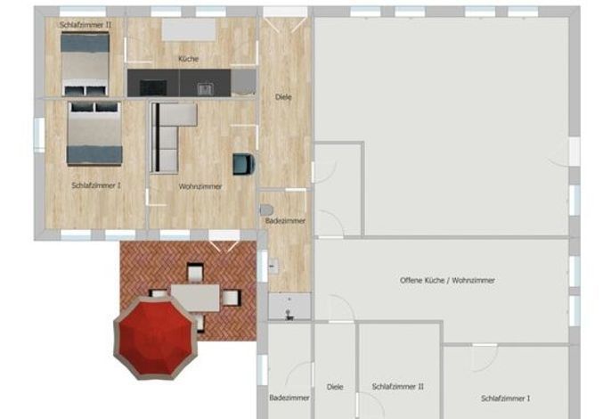 Ein Parkplatz ist direkt am Haus vorhanden.