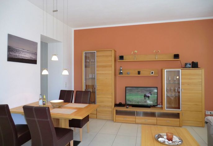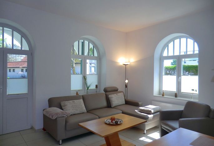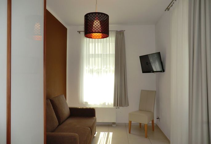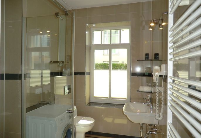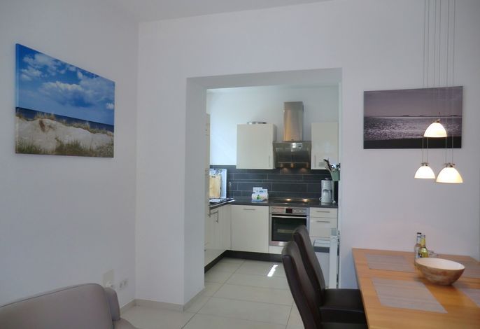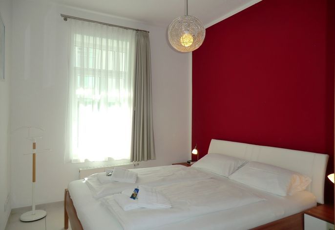 Die exklusiv neu ausgestattete und helle Wohnung verfügt über 2 Schlafzimmer (1 x mit Doppelbett / 1 x mit exklusiver Schlafcouch), 1 Wohnzimmer mit integrierter moderner Küchenzeile, sowie ein Duschbad. Ein W-LAN Anschluß steht Ihnen kostenfrei zur Verfügung.