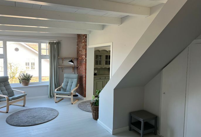 Die gemütliche und lichtdurchflutete Wohnung mit Loftcharakter in der ersten Etage bietet für ein bis zwei Personen plus Kleinkind ausreichend Platz für einen erholsamen Inselurlaub.