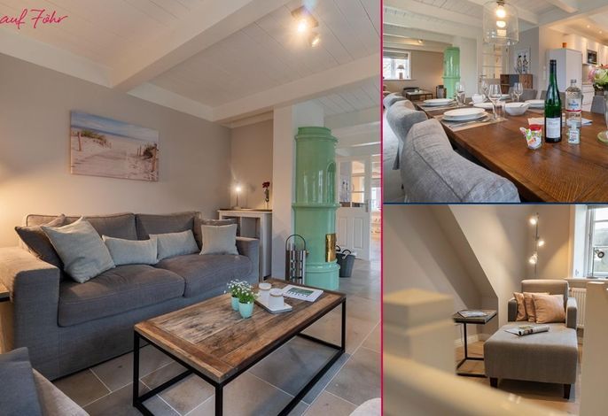 Zu den Highlights der Ferienunterkunft zählen wir u. a. den Original Mylin-Kachelofen, die ansprechende Ausstattung und den Garten mit Terrasse und Strandkorb.