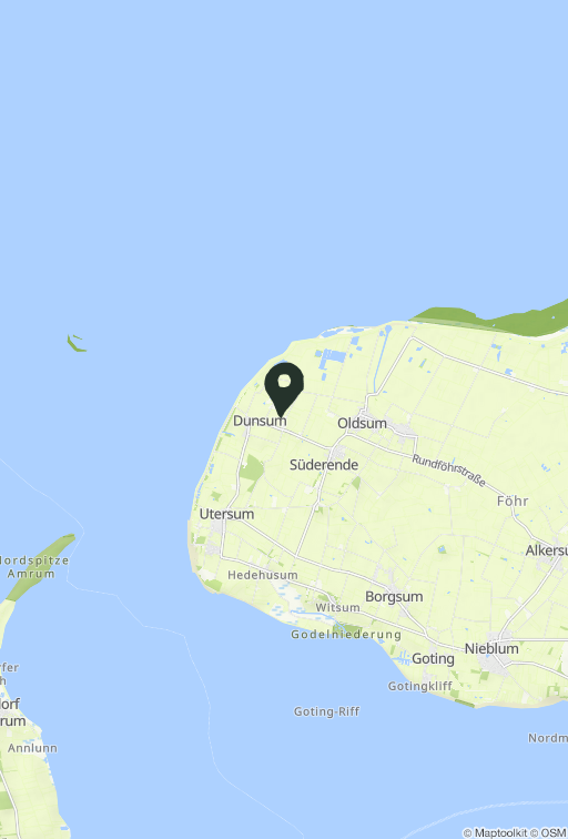 Dunsum prägt ein landwirtschaftlicher Charakter und ist bekannt für seine Ruhe und Beschaulichkeit. In den Sommermonaten starten von Dunsum Wattwanderungen zur Insel Amrum, die ebenso wie Sylt von Dunsum aus zu sehen ist. Besonders schön und romantisch sind die Sonnenuntergänge an der Westküste Föhrs. Hier in Dunsum kann man den Alltag vergessen und zur Ruhe kommen.